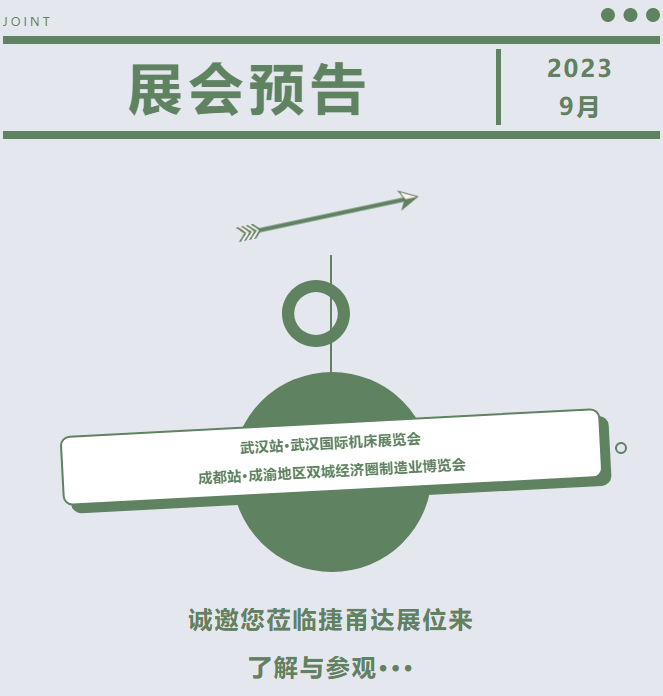 歡迎您到捷甬達(dá)展位來了解與參觀!JM2023第26屆濟(jì)南國(guó)際機(jī)床展覽會(huì);CWIEME2023西部制博會(huì);CCiME2023...